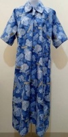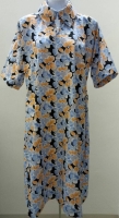 Purple Flowers Blue Leaves Shirt Sleeve Dress